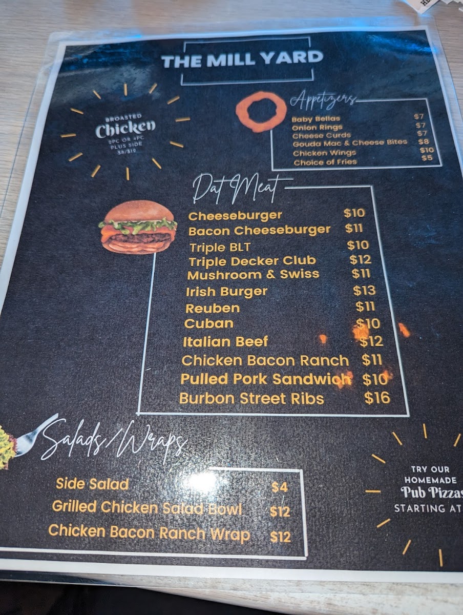Accompany your main course with tempting sides like Cheese Curds and Onion Rings, both at $7. The atmosphere is lively and warm, making it an ideal spot for families, as noted in customer reviews. With reasonably priced drinks and a vibrant vibe, The Mill Yard promises a dining experience combined with delectable food!
